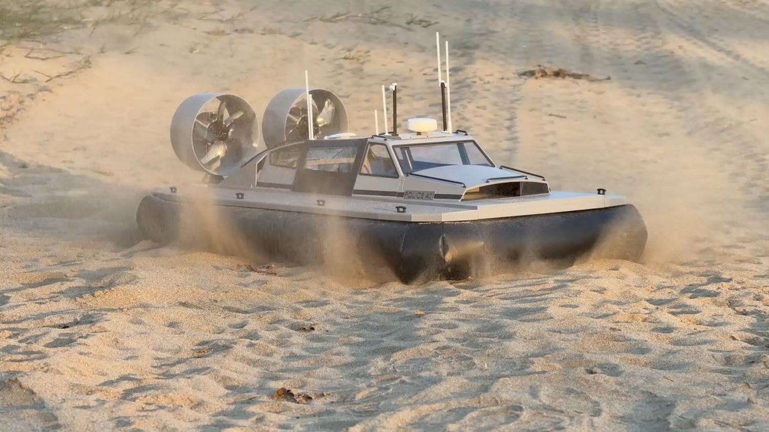 Amphibious Simulated RCHovercraft Model with Coaxial Contra-Rotating Design